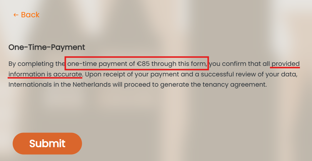 Errors in details such as, but not limited to end-date, date of birth, document ID number, country of origin, email, or misspelled names cannot be manually edited on our side. In such cases, you will need to submit a new Tenant Intake Form and pay the one-time fee again without a refund for the previous forms. Therefore, we strongly recommend thoroughly reviewing the Tenant Intake Form before finalizing it to prevent unnecessary time and expenses.